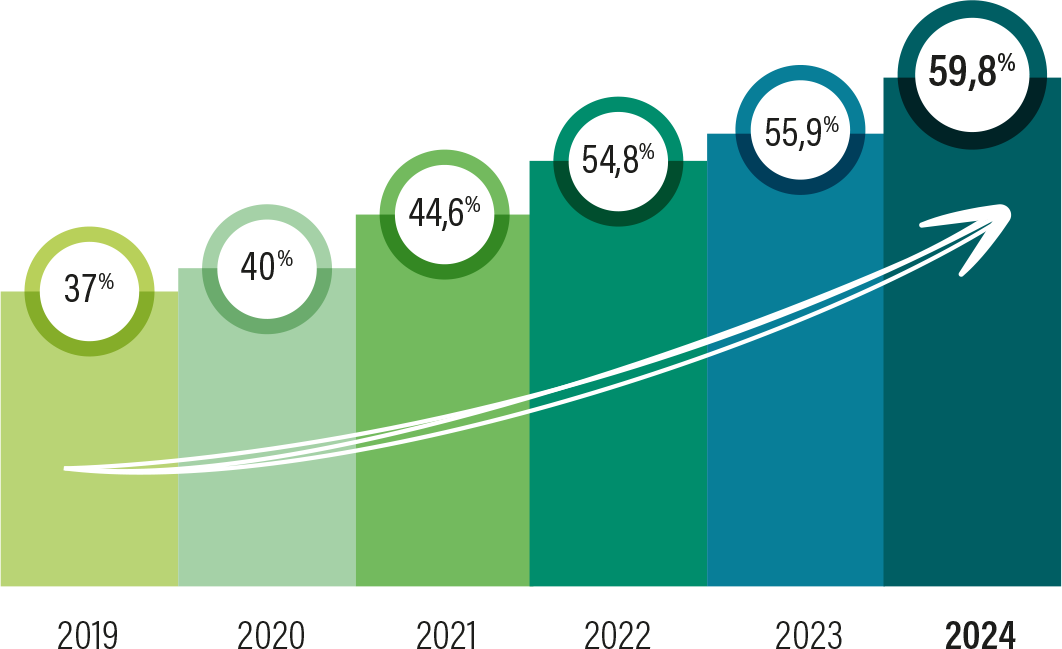 Le taux de fréquence mesure le nombre d’entreprises membres utilisant un minimum de trois services CTC sur l’année.