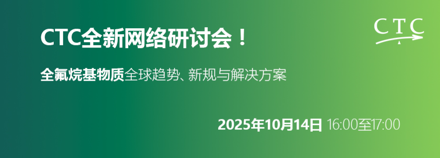 CTC专家诚邀您参加2025年10月14日举办的网络研讨会,共同探讨全氟烷基物质(PFAS)相关的全球趋势、新规动向及解决方案。